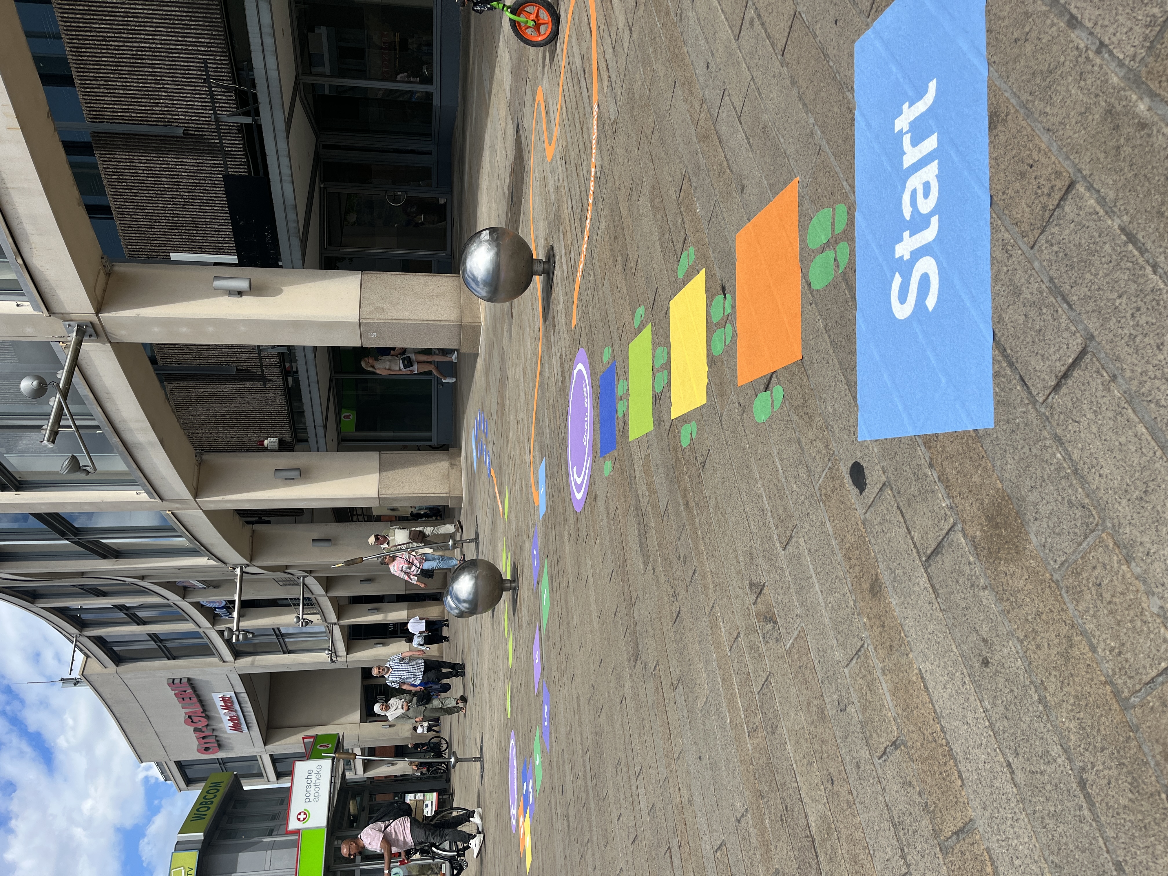 Am 11.04.2026 von 12–16 Uhr findet in der Porschestraße unter dem Glasdach unsere Mitmach-Aktion statt. Gestalte dein eigenes Hüpfspiel mit Straßenkreide – und nimm automatisch am Wettbewerb teil. Wir freuen uns auf dich!